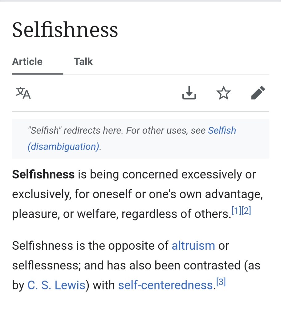 - https://en.m.wikipedia.org/wiki/Selfishness