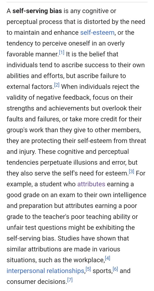 - https://en.m.wikipedia.org/wiki/Self-serving_bias