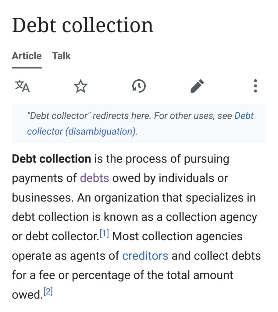 - https://en.m.wikipedia.org/wiki/Debt_collection
