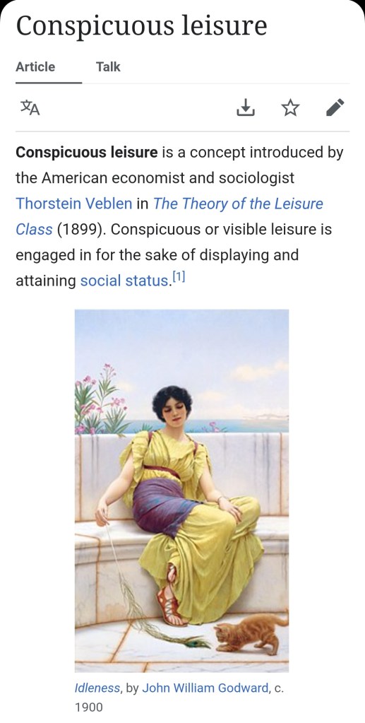 - https://en.m.wikipedia.org/wiki/Conspicuous_leisure