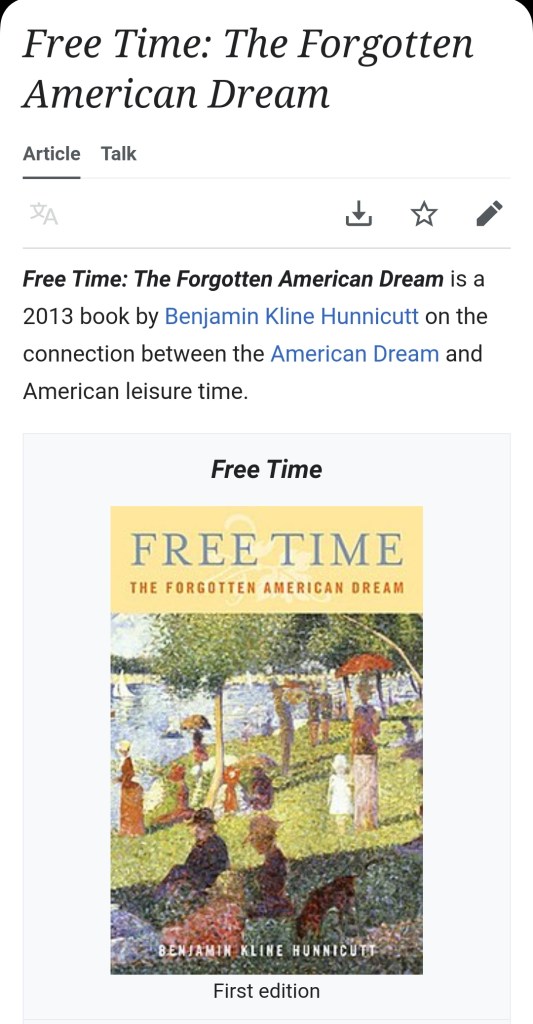- https://en.m.wikipedia.org/wiki/Free_Time:_The_Forgotten_American_Dream (affiliate this)