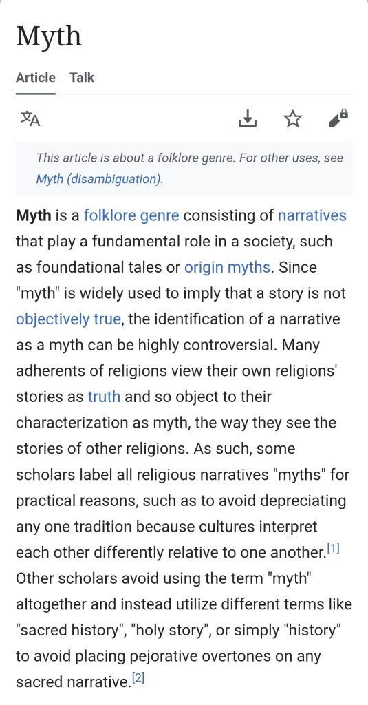 “A myth is an image in terms of which we try to make sense of the world.”