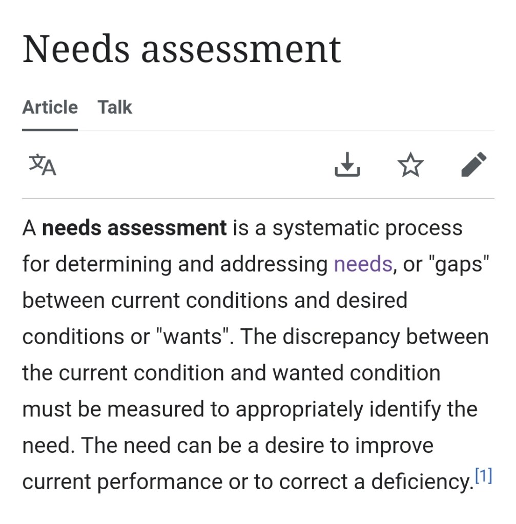 - https://en.m.wikipedia.org/wiki/Needs_assessment