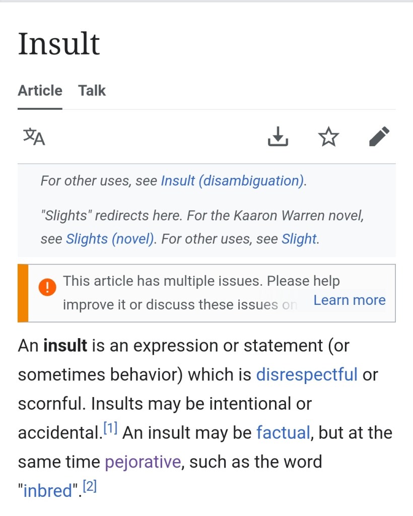 There are a few concepts related to insult that might be worth mentioning. One is that insult can be used as a tool to assert power or control over others. Another is that insult can be used as a form of communication. Insult can be used to communicate a negative opinion or to convey a negative attitude.