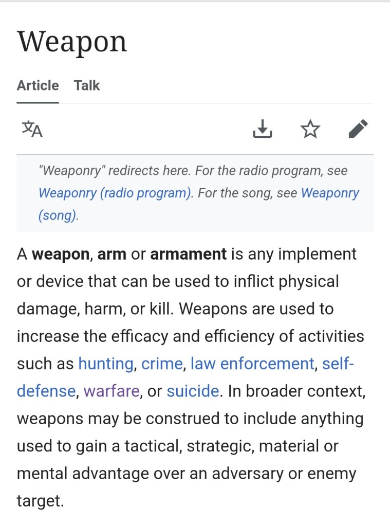 - https://en.m.wikipedia.org/wiki/Weapon