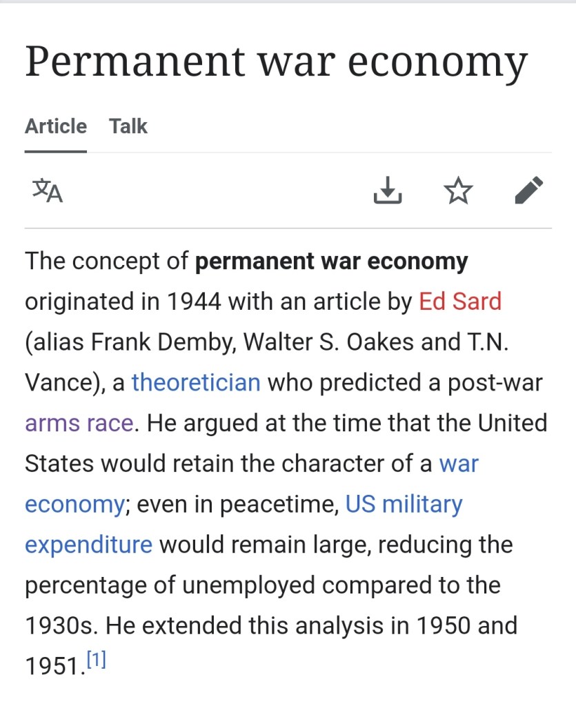 - https://en.m.wikipedia.org/wiki/Permanent_war_economy