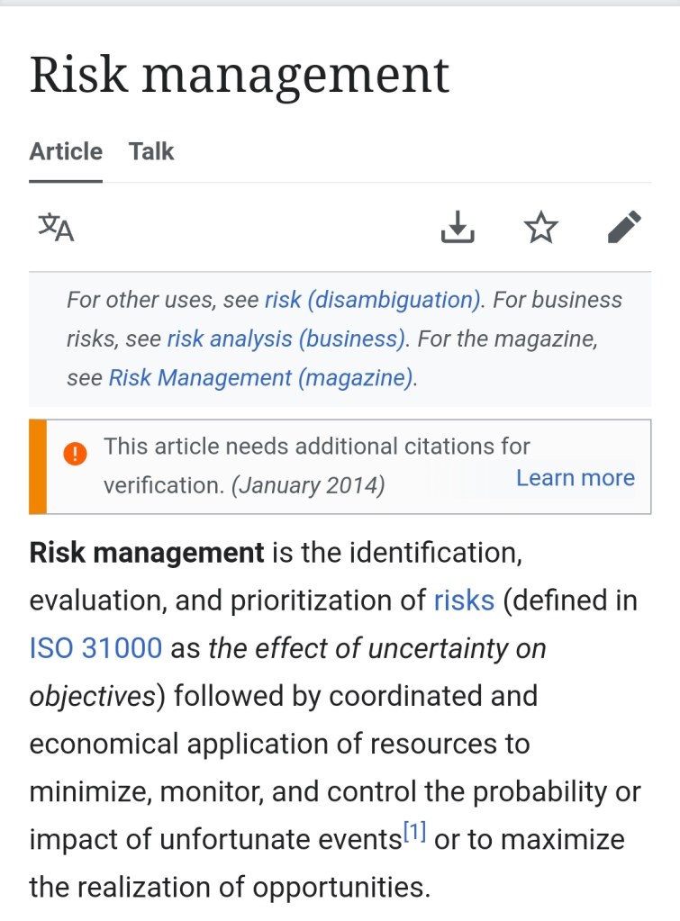 - https://en.m.wikipedia.org/wiki/Risk_management