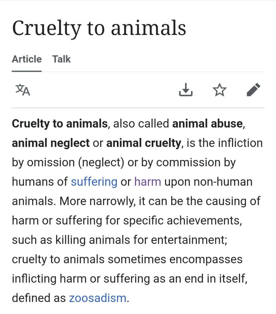 - https://en.m.wikipedia.org/wiki/Cruelty_to_animals