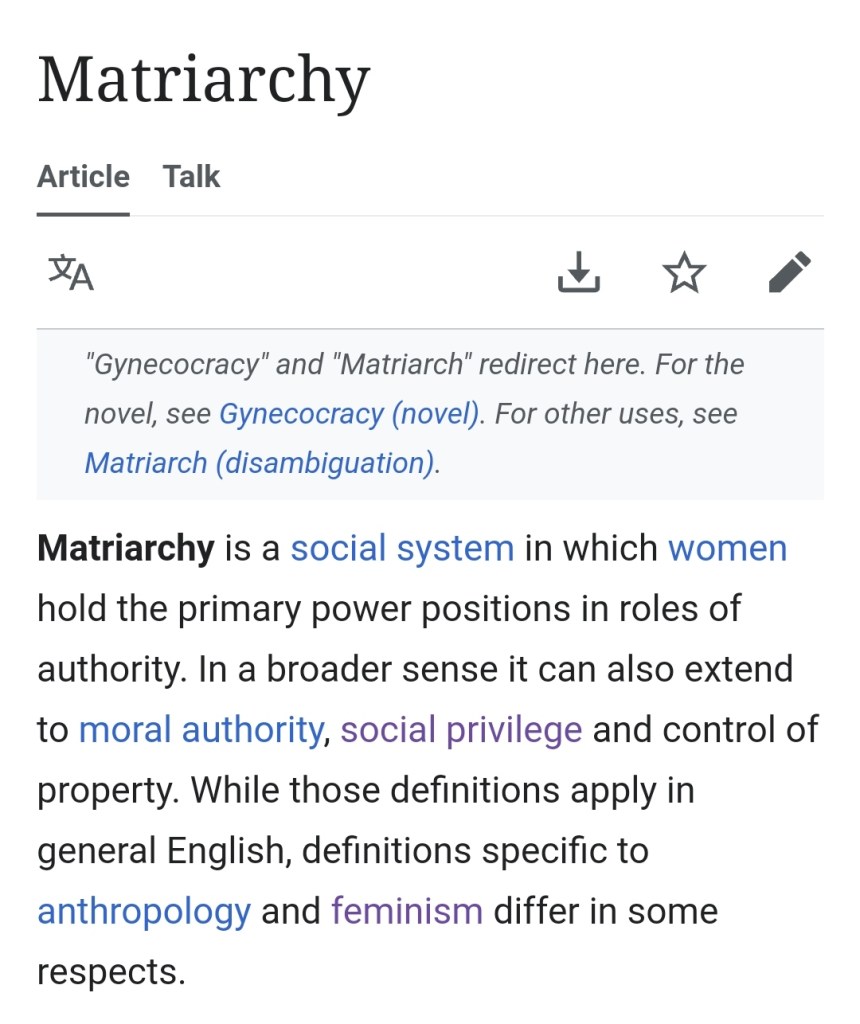 Me: Usury plus usury unawareness will create episodes of: “Matriarchy vs Patriarchy”.