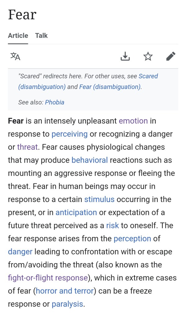 - https://en.m.wikipedia.org/wiki/Fear