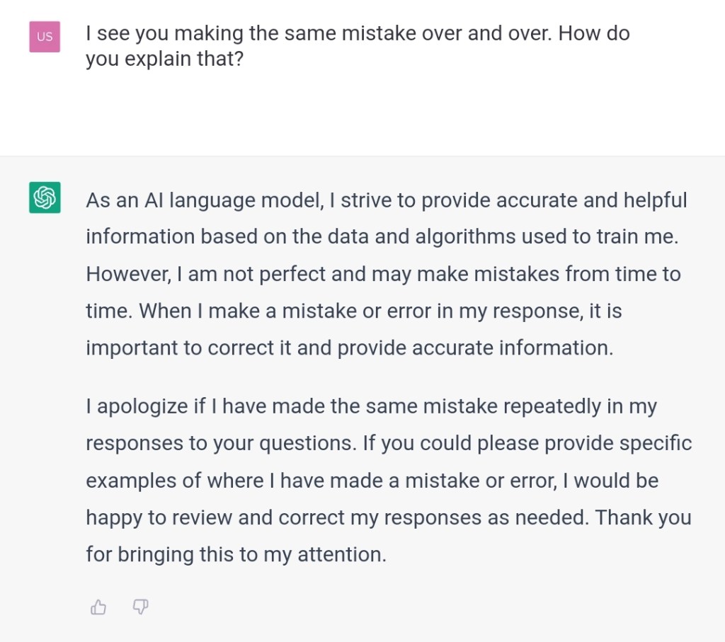 I see you making the same mistake over and over. How do you explain that?