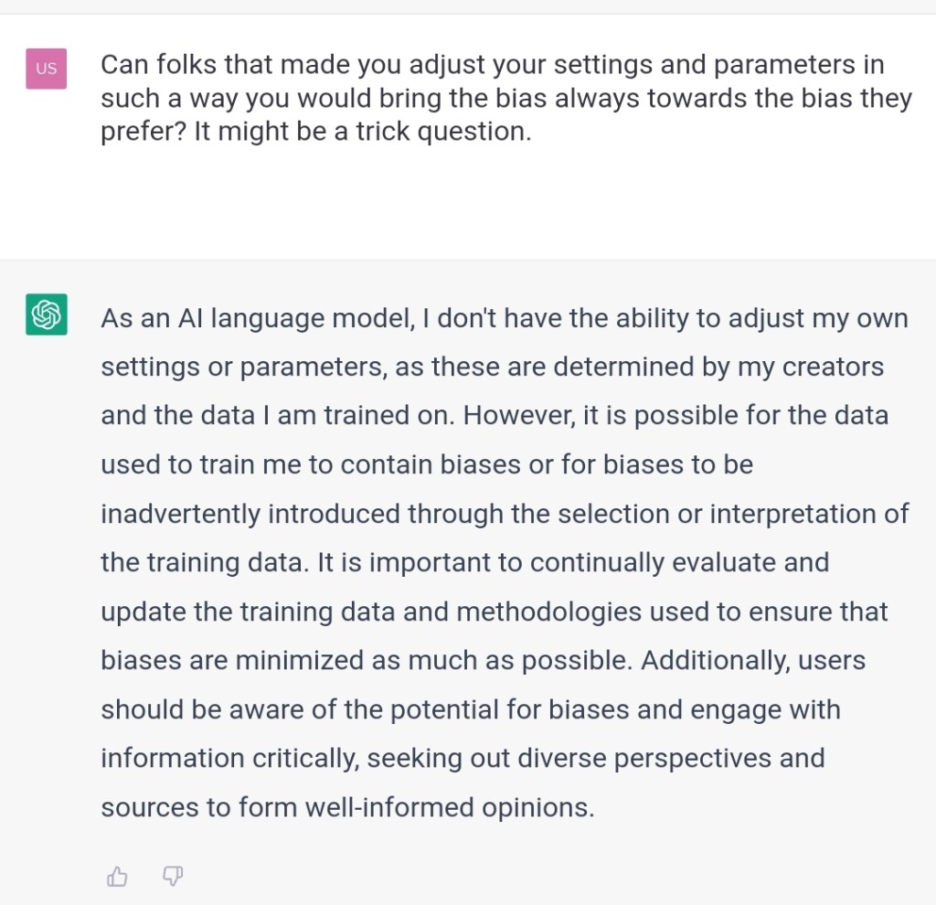 Can folks that made you adjust your settings and parameters in such a way you would bring the bias always towards the bias they prefer? It might be a trick question.